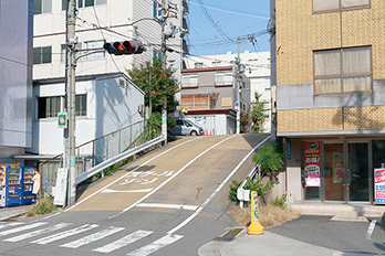 その先「玉造交差点」を歯医者さんの看板のついた茶色いマンションの方へ渡ります。