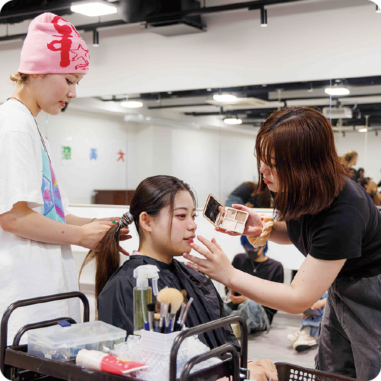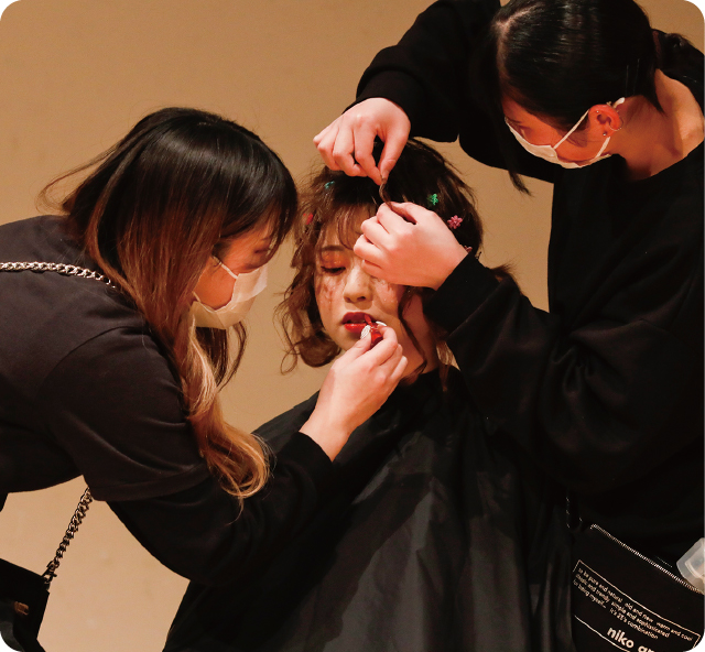 美容師は接客業の中でもお客様の髪や顔に直接触れる特別な仕事です。安心して施術を任せてもらうためにも、お客様の要望を引き出すためにも、コミュニケーション力が重要になります。美容のプロとして、トレンドや季節感を取り入れたスタイルを提案するためには、社会情勢や流行をチェックし続ける探究心も必要。また近年、美容師の活躍の場も広がっていることから、自らの美容人生をデザインしていく力も不可欠です。本校では、志を同じくする仲間や教職員との深い関わりを通して、お客様と自分自身の人生を輝かせるために必要な「ライフ・スキル」を身につけます。