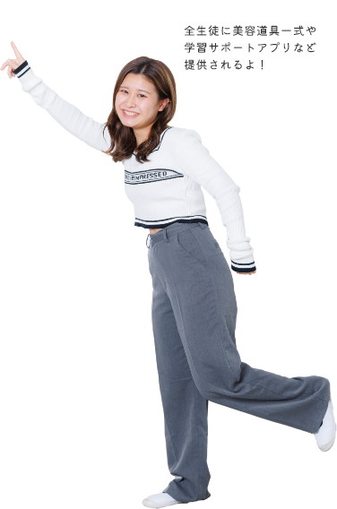 美容師国家資格の取得をベースにトータルに美容を学ぶので、やりたい分野がきっと見つかります。